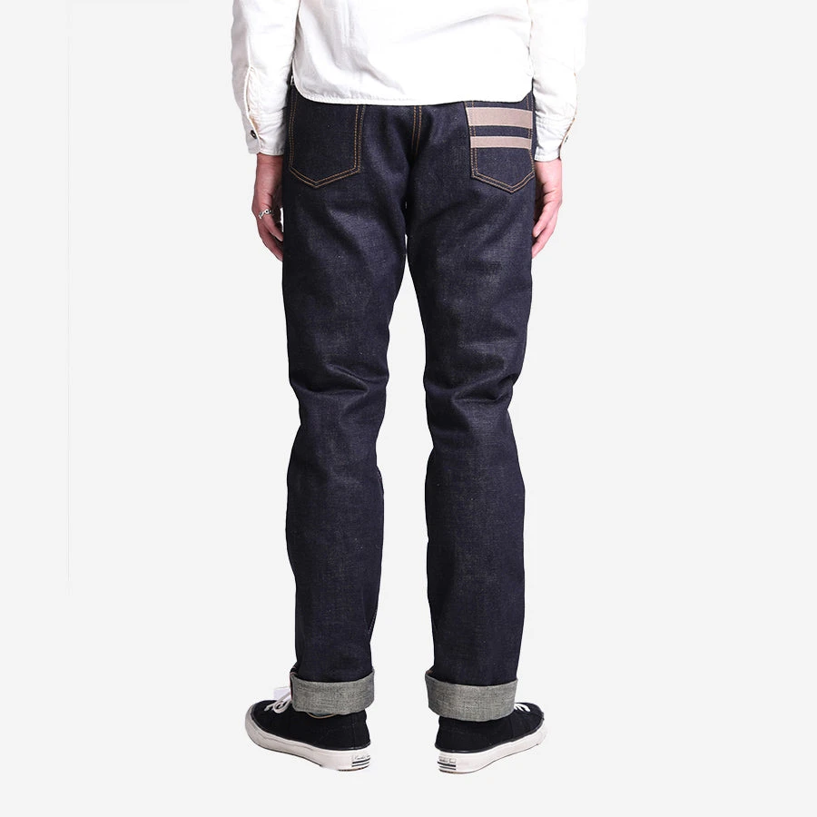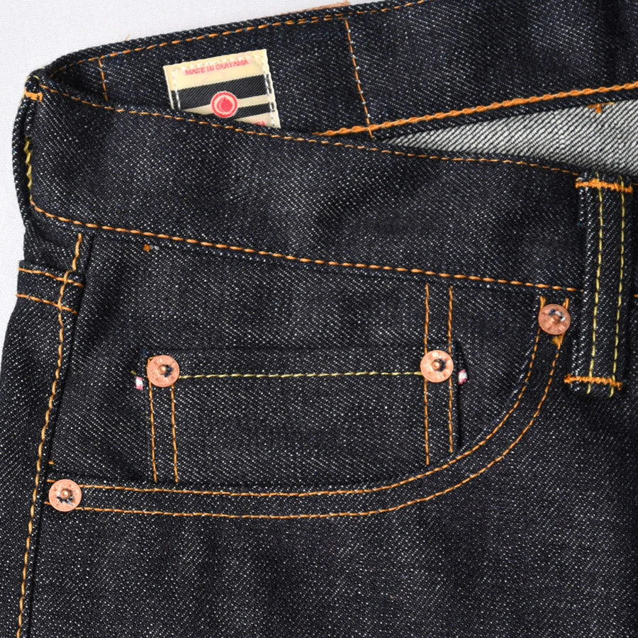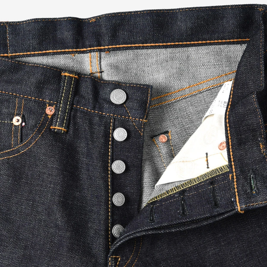 MOMOTARO’s “Natural Tapered” fit is a roomy fit in the top block with a healthy taper from the knee down. The denim has a medium rise, roomy medium thighs, and a taper to the leg.