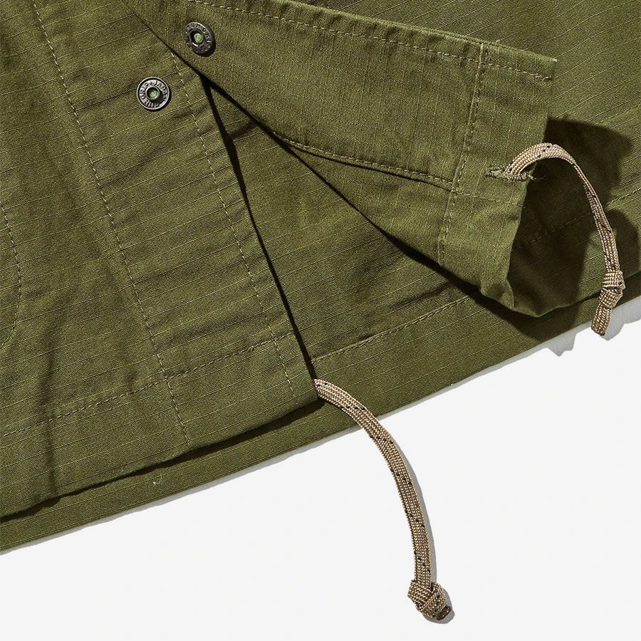 Fabric Notes: For SS23, Battenwear is using one of their favourite fabrics, a ripstop cotton. Military fabric engineers developed ripstop fabrics during WWII, using double warp and weft threads woven into a crosshatch pattern which is resistant to tearing and ripping. This crosshatch construction makes the fabric feel heavier, but this particular ripstop is only 6.5 oz, making it lightweight while still durable.