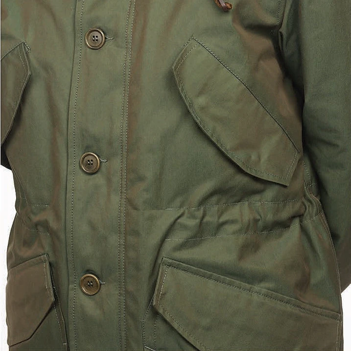The Boston Army Parka offers comfort, free range of motion and a complete protection against the wind, water and moisture and is excellent for hiking, travel and everyday wear. Finished in a waterproof resin cotton, the parka features a high collar with an adjustable hood, sturdy, two-way front zipper with buttoned weather resistant flap for added protection and adjustable cuffs. Two front snap button flap patch pockets provide ample storage for your belongings while the two upper chest snap button flap pockets keep your hands warm. A brimmed hood with adjustable cord via stoppers keeps you protected from the elements while the internal adjustable cord provides shape and helps prevent wind from riding up the inside of the jacket.