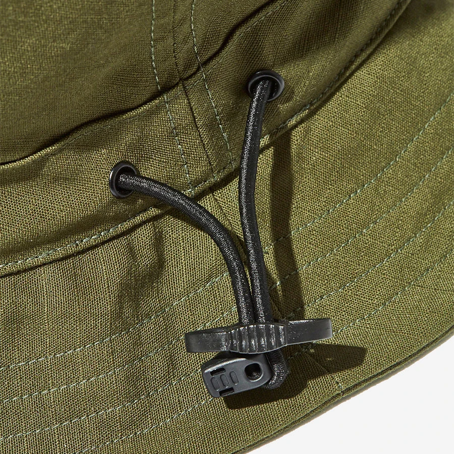 The Camp Crusher was invented while the Battenwear crew were vacationing in a cabin by a river. After a long, lovely day wading in and out of the water, kayaking, fishing and playing on the shores – this is the hat they dreamt up. However, this is also great for the beach, great for a backyard barbeque and great for a afternoon stroll. It stays on tight via adjustable nylon cord. It can be folded up easily and tucked into a pocket. It can get wet and dries quickly, thank to the Taslan Nylon. Taslan is generally known for being quick-drying and soft like cotton, and this particular taslan also has a finely crinkled texture making it well suited for hot days.