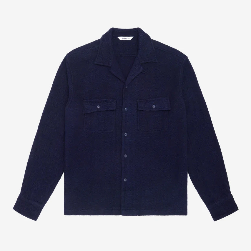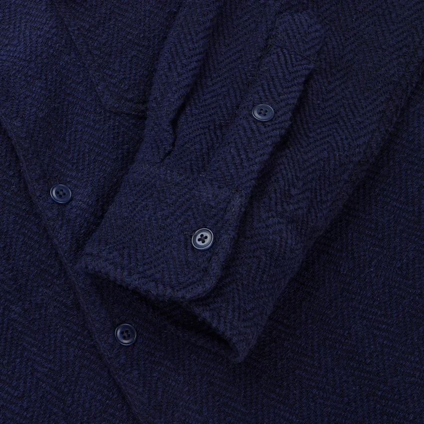 Based on vintage outdoor shirts, the Camp Shirt utilizes unique slant flap pockets, an open collar with loop closure, and a split side hem. The slightly roomy fit paired with the split hem offers easy, comfortable wear year-round and allows for easy layering. This season, the Camp Shirt features a chunky, textured herringbone twill (HBT) pattern with incredible depth.