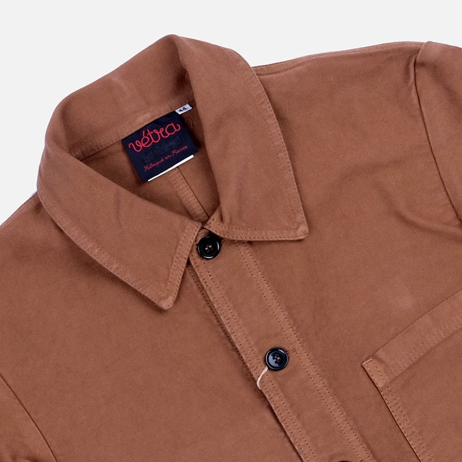 The chore jacket was originally a garment worn by farmhands during chilly mornings on the job. The boxy number had the look of a loose fitting shirt, only it was heavier and more durable, making it ideal for layering and fighting off the elements. Today, many menswear designers have taken the work jacket, given it a trim and a bit of fine-tuning, and released a more style-focused version. Vetra still cuts and sews their garments in France using the same traditional methods and materials they did many years ago.