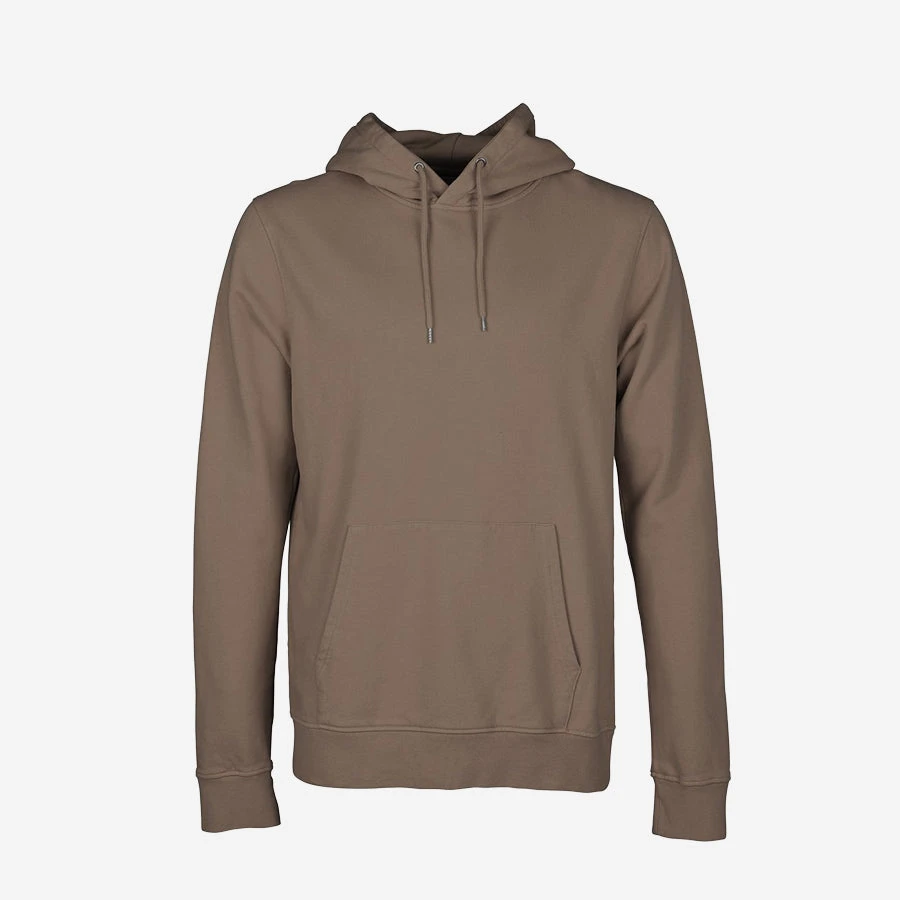 There is endless versatility with this hooded sweatshirt. With a clean design, simple look and comfort incorporated into the design, it continues to be a must-have staple. A sporty, regular fit hoodie made from 100% organic cotton. The outside is densely knitted for a smooth feel and clean look while the inside is brushed for a soft and comfortable feel. Double-lined hood and kangaroo pocket on the front. The colour is garment-dyed into the fabric giving it a livelier look and long-lasting colour fastness. Pre-washed, so it won’t shrink or twist despite how many times you wash it. Made to last in a sustainable manner at their factory in Barcelos, Portugal. A classic, warm and natural shade of colour pending between brown and grey.