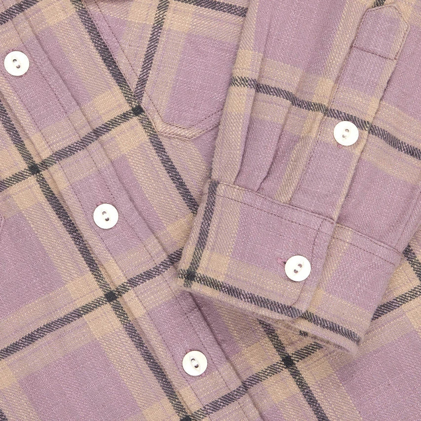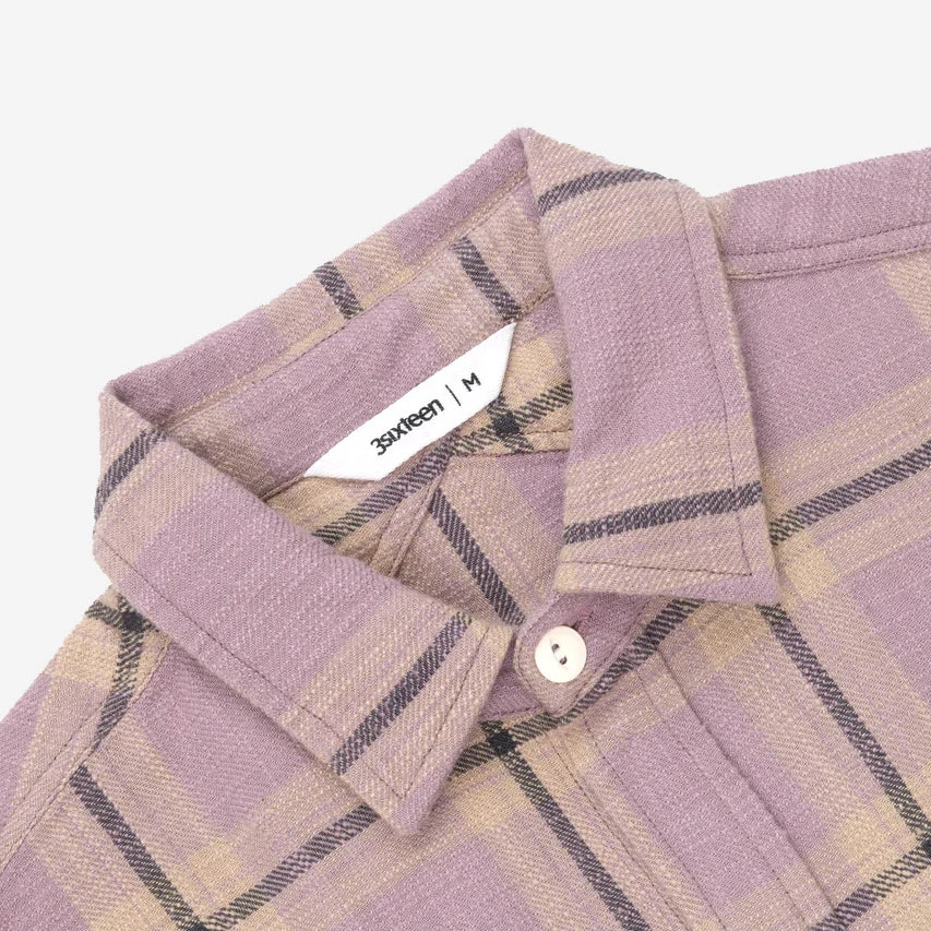 The Crosscut Flannel is a flagship 3sixteen silhouette and features a custom woven cotton flannel fabric, a crossed back yoke, and enamel-coated metal buttons that will patina and chip over time. The fabric is made entirely to their specs, down to the irregular yarn thicknesses that yield a highly textured slub hand and the brushed exterior and interior.