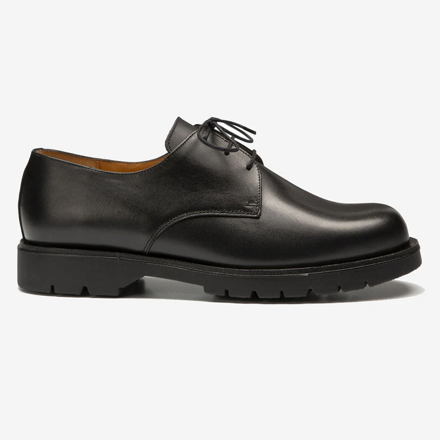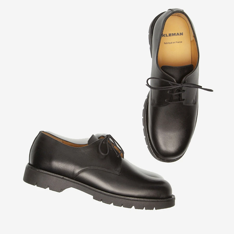 Crafted in KLEMAN’s French workshop, the DORMANCE wears a rounded shape with raw and authentic elegance as a legacy from their professional models. Made from quality European leathers, this black derby shoe is placed on a black rubber sole standard EN-20347 known for its anti-slip and anti-abrasion properties. For greater resistance to wear, the DORMANCE is lined in beige calfskin. Its Poron® insole absorbs shocks and provides optimal comfort.