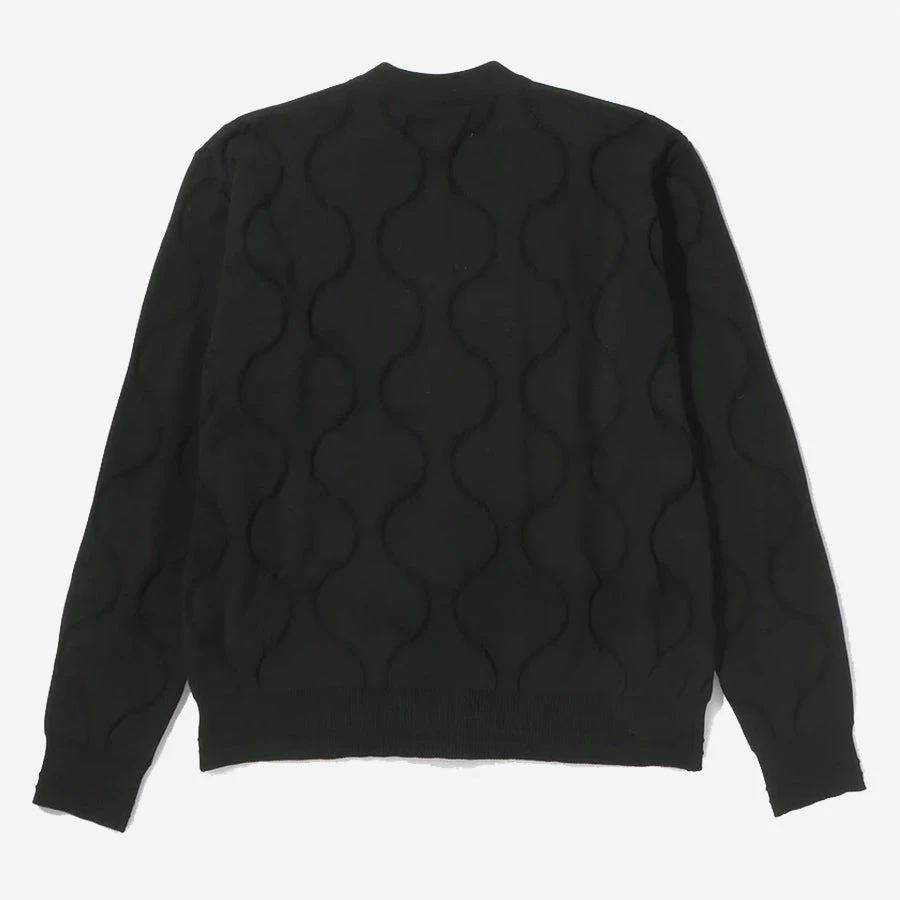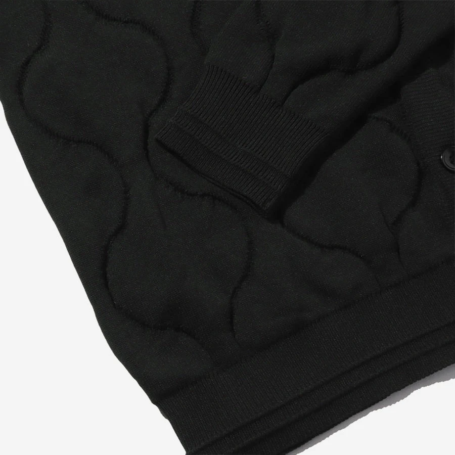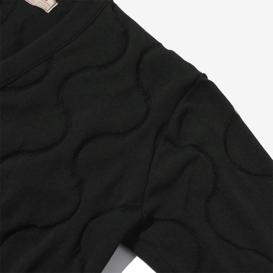 Ecopet yarn is a 100% recycled material yarn using recycled PET. It is a material with excellent lightness, comfortable stretchability, and soft touch due to special thread processing and dyeing. The loofah (or dumbbell) quilt stitching pattern makes good use of the force that is a characteristic of the thread, and a three-dimensional expression is realized. Ribbed neck, hem and cuff finish off the look.