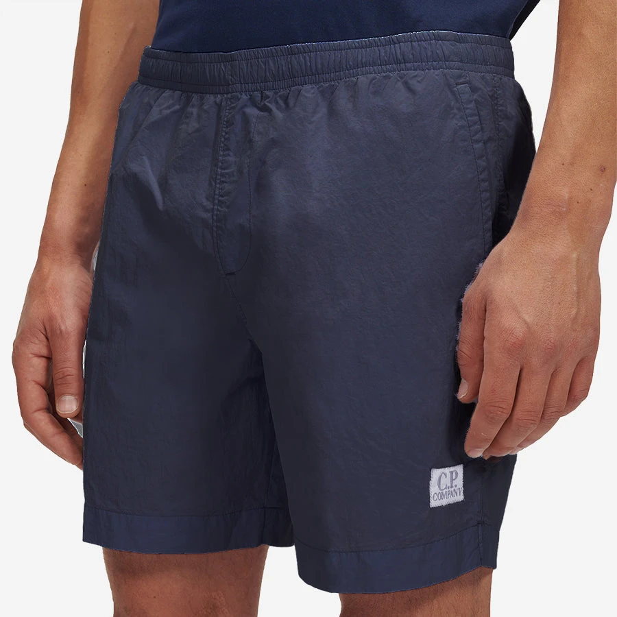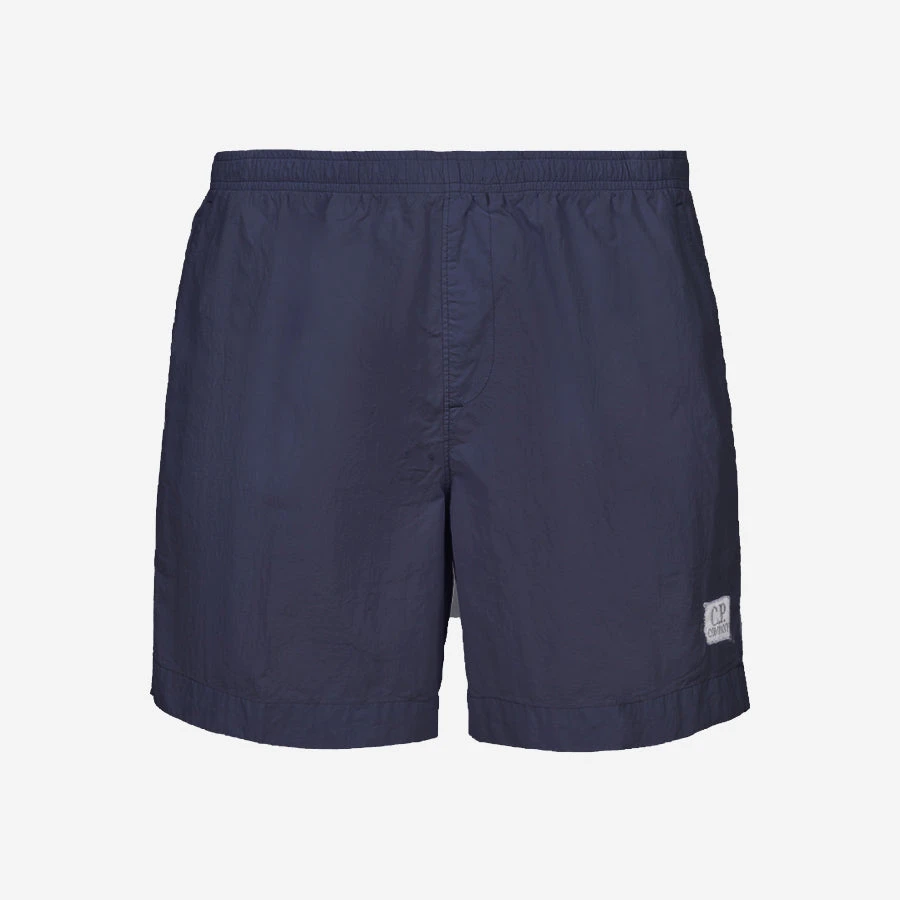 Nylon dyed swim shorts constructed with an elasticated drawstring waist, hand pockets and a logo detail. Flatt Nylon is an emerized nylon. The resulting fabric is softer and has a matte finish, similar to any fabric that has been worn and washed many times.