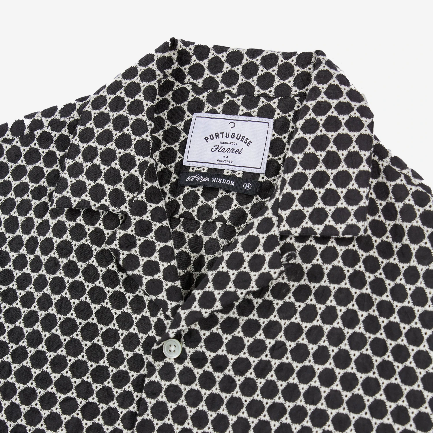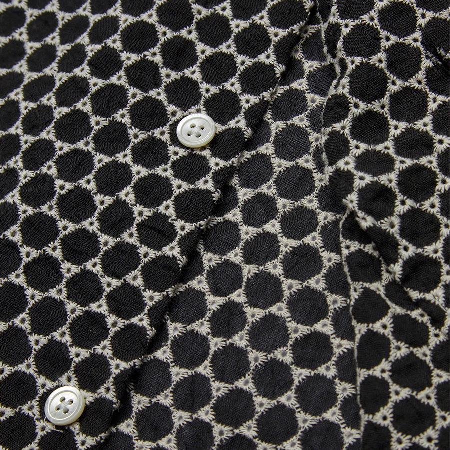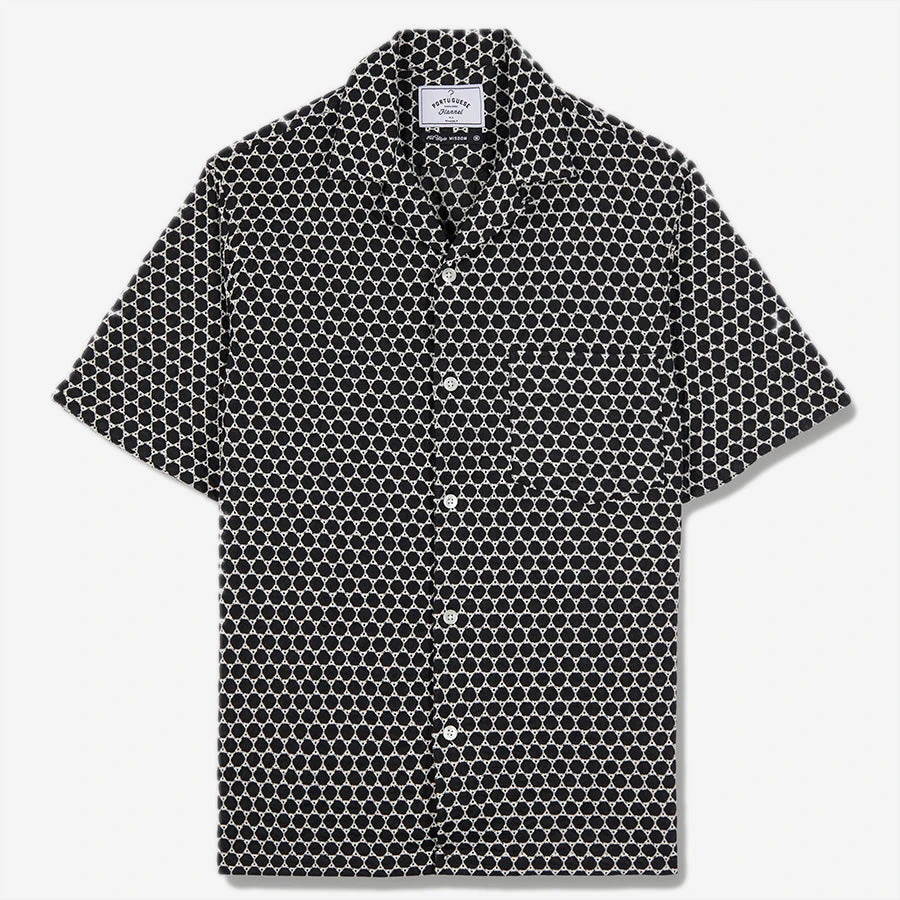 The Folc is a summer-ready shirt in a soft and lightweight Cotton/Poly blend. Embroidered with a geometic pattern, this Vacation (or Camp collar) shirt is sure to liven up any wardrobe rotation. Made in Portugal, this style is trimmed with a patch pocket to the chest, open collar and white buttons finish the look.