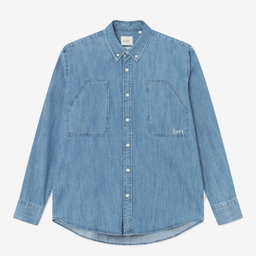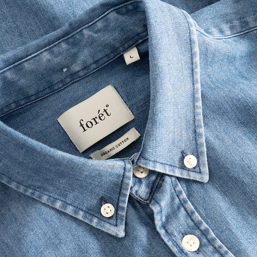 - Woven foret logo on bottom placket