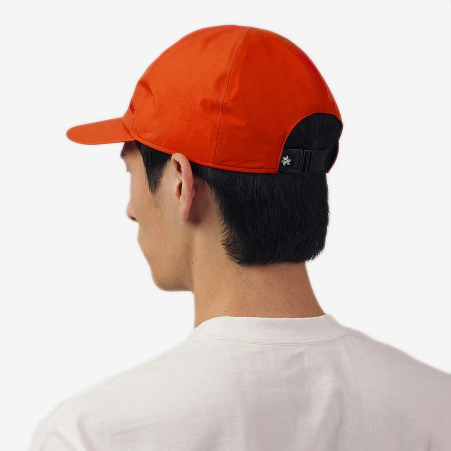 This rain cap is made of 3-layered GORE-TEX PRODUCTS with superior waterproof and moisture-permeability. The 6-panel cap is constructed from GORE-TEX 3L Nylon and finished with a sturdy, black nylon adjustable strap and plastic buckle fastening.