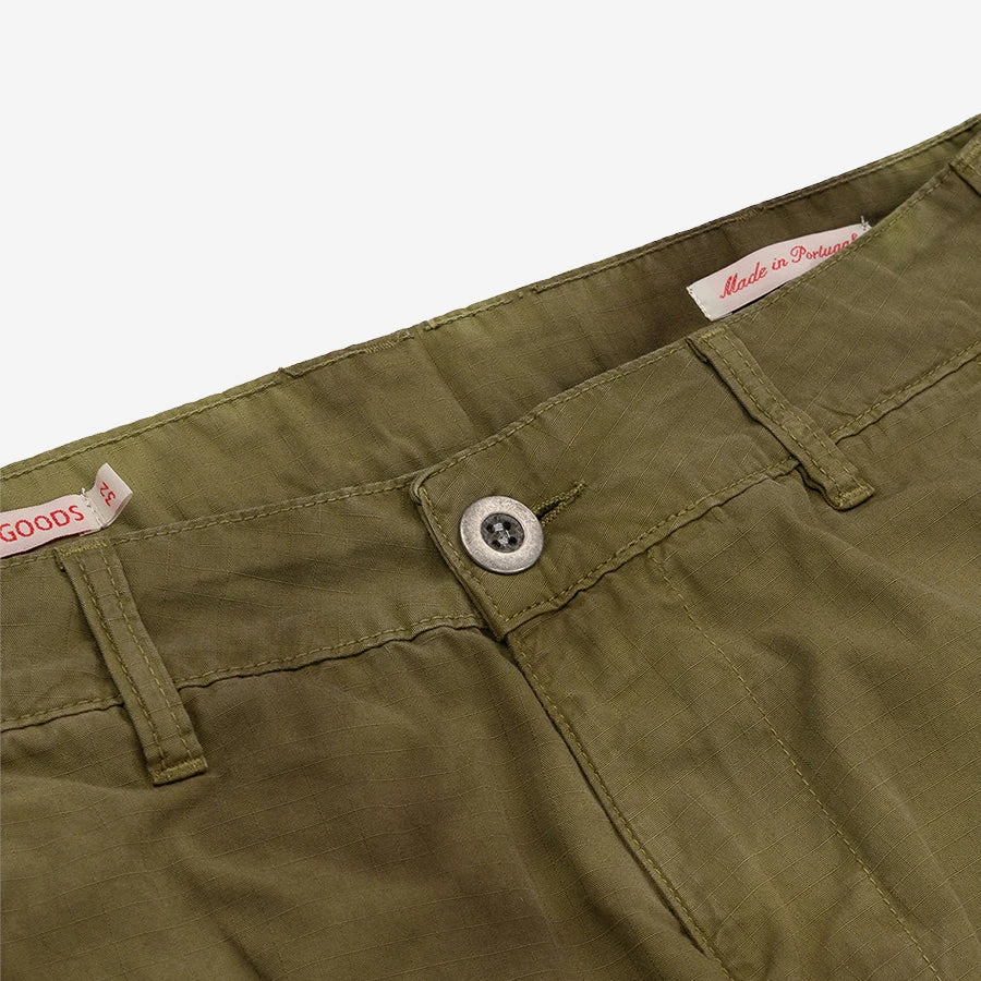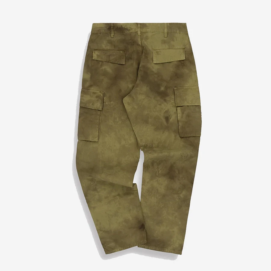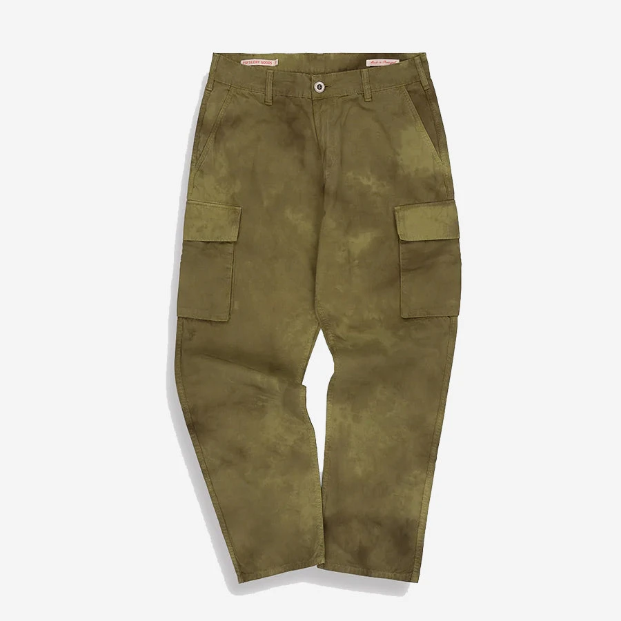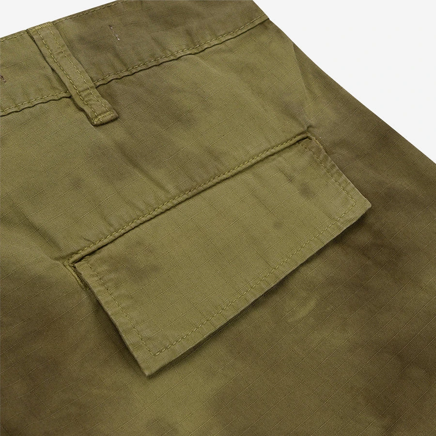 These Jungle Pants are based on the iconic Vietnam War era US Army ripstop combat pants, with a slightly tapered leg for a contemporary wardrobe. Made from Portuguese 8oz organic ripstop cotton, they have the same wind proof, hard wearing durability as the originals. Ripstop cotton was ideally suited to the jungle warfare in Vietnam because it was both lightweight and quick drying, TSPTR has reproduced the same weight and quality and then overdyed it using natural dye. The densely woven cotton is super lightweight and naturally wind resistant. Features two cargo pockets at the thigh and two back welt pockets with flaps.