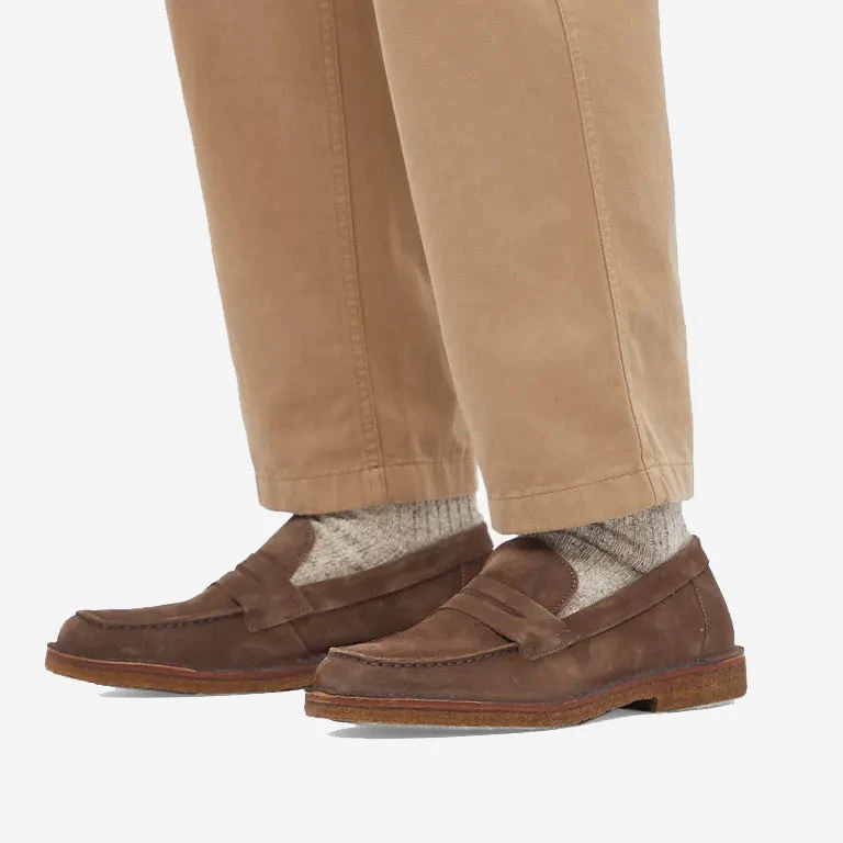 The iconic Penny Loafer silhouette has been given Astorflex’s environmentally-friendly update. Handmade in Northern Italy, these are outfitted with their trademark sustainably sourced, traditionally dyed leather — slow-tanned for suppleness (30 days) — and natural rubber soles. The plush suede and comfortable natural crepe soles make these charming loafers easy to dress up for your next outdoor party or down with jeans and a polo for a night on the town.