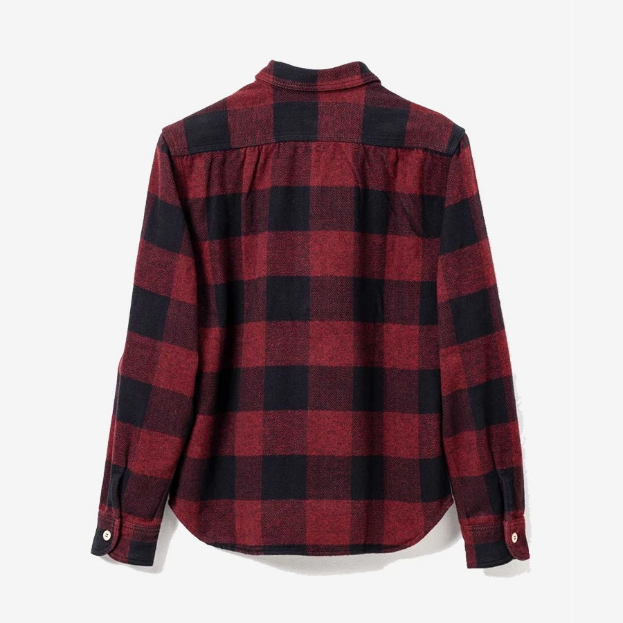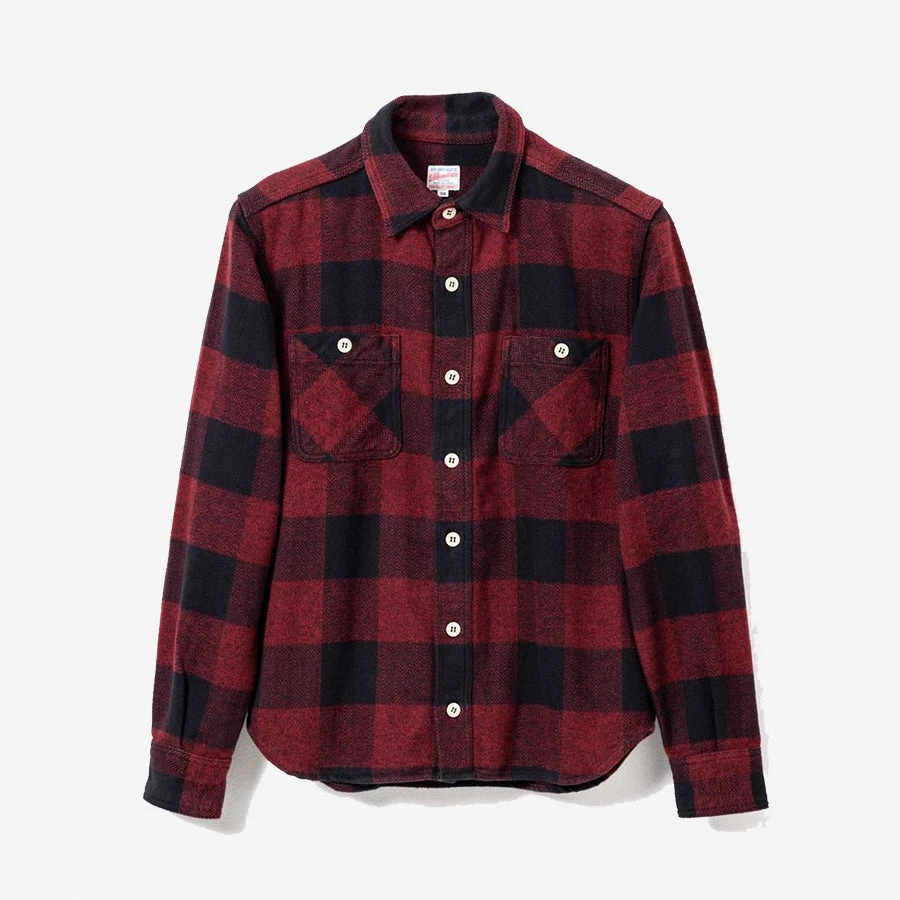 MOMOTARO’s original check shirt is made of “MIKOYORI” herringbone fabric, which is woven from three twisted threads and known for its durability. The chunky brushed flannel fabric really gives off a crisp texture while maintaining it’s rugged aesthetic, with the original herringbone check pattern adding just the right touch of uniqueness while still maintaining that vintage feel. These shirts sit on the slimmer side of regular, with a touch more room in the arms to allow for easy layering. Triple needle stitching, urea resin buttons and dual chest pockets both add to the workwear vibes.