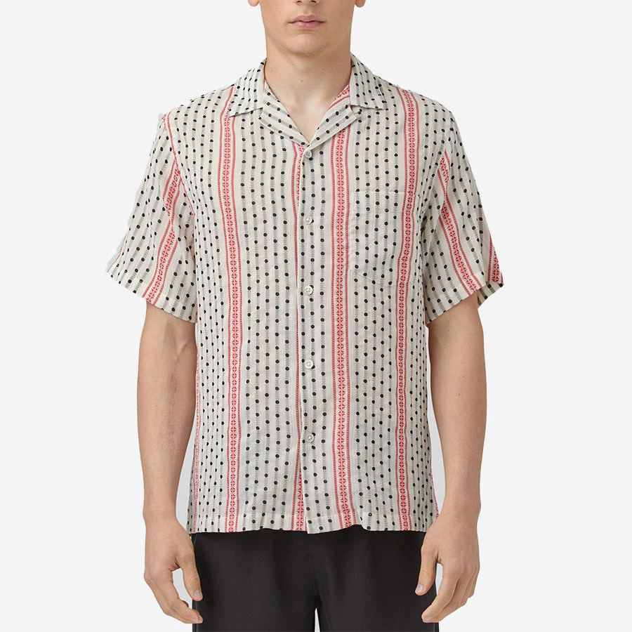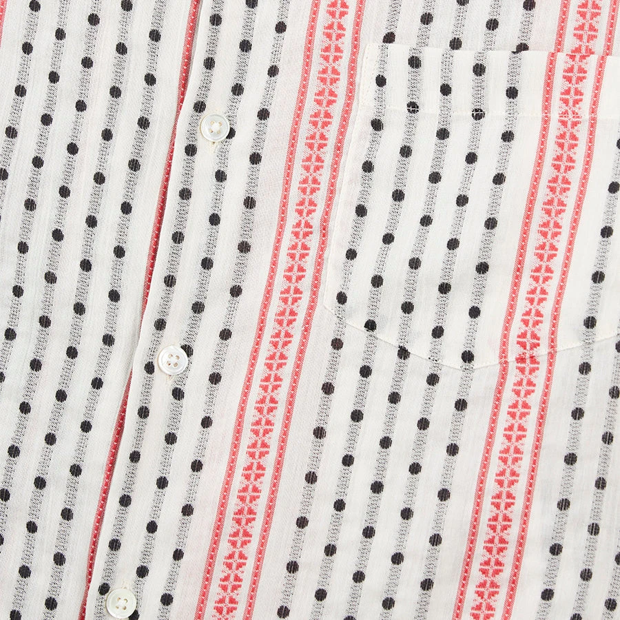 The Orto is a summer-ready shirt in a soft, lightweight and loose-weave gauze Cotton. Featuring a geometric design, this Vacation (or Camp collar) shirt is sure to liven up any wardrobe rotation. Made in Portugal, this style is trimmed with a patch pocket to the chest, open collar and white buttons finish the look.