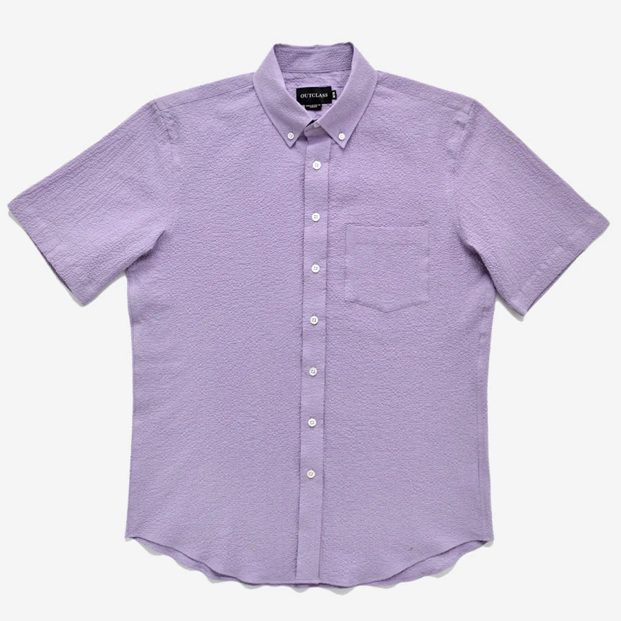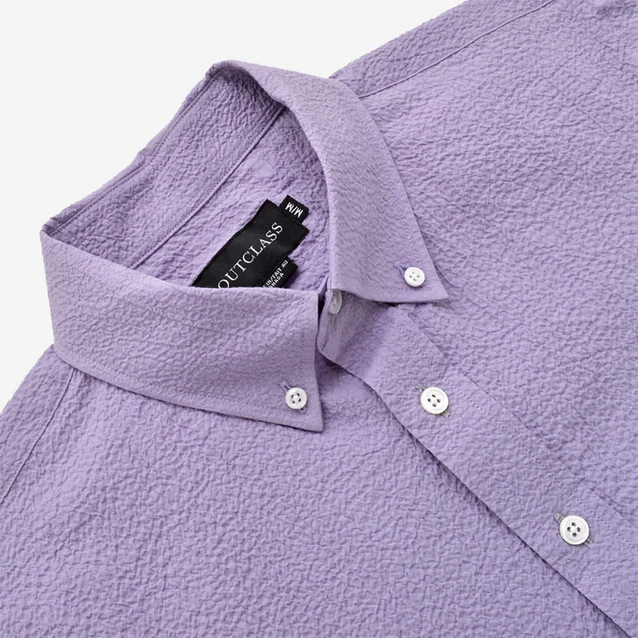 This shirt is made using a breathable, Portuguese cotton seersucker fabric. The shirt is constructed with double-needle seams, a standard breast pocket, button-down collar and is finished with white mother of pearl buttons.