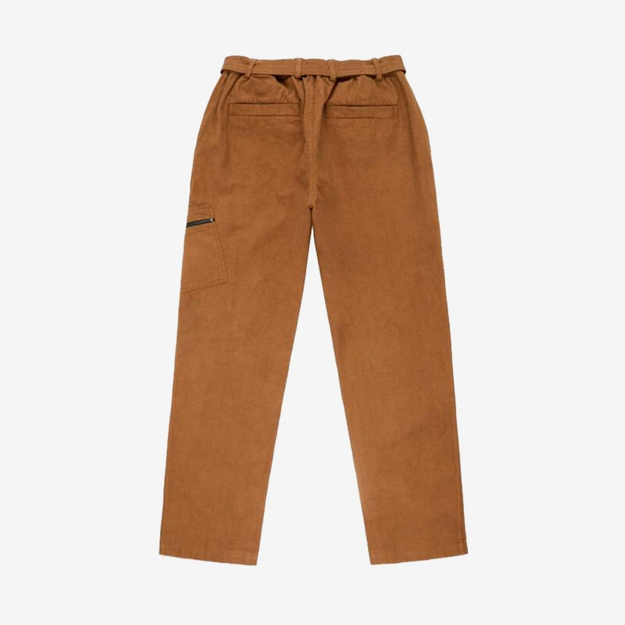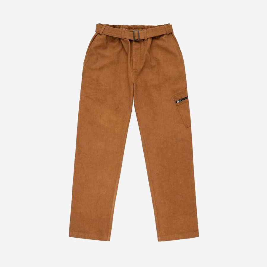 New for FW22, the Service Pant is a straight leg pant with an elastic waist and self-fabric belt. The elastic waist allows for choice between multiple sizes and the self fabric belt can be removed and replaced with a traditional belt if preferred. The pant features a single angled thigh pocket with a zip closure, angled front pockets and welt back pockets.